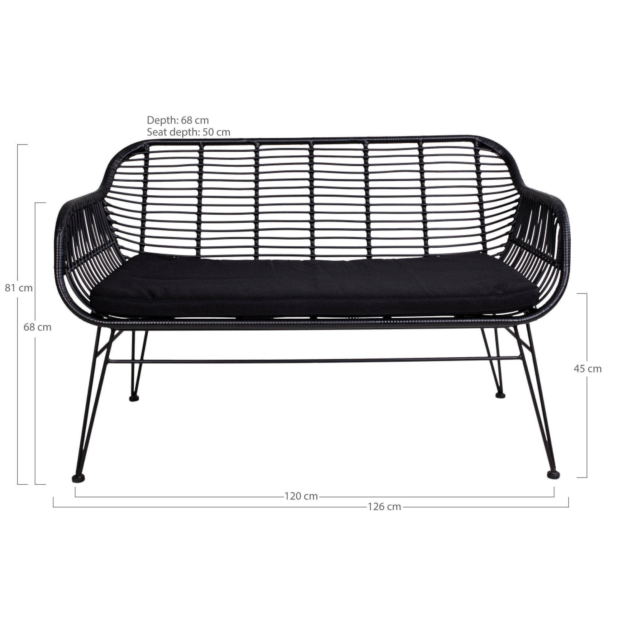 Den robuste metalramme giver stabilitet og lang holdbarhed, mens materialevalget gør sofaen modstandsdygtig over for vind og vejr – perfekt til det nordiske klima. Sofaen leveres med bløde hynder, der matcher både det æstetiske udtryk og behovet for komfort, og gør den ideel til afslapning alene eller i godt selskab.